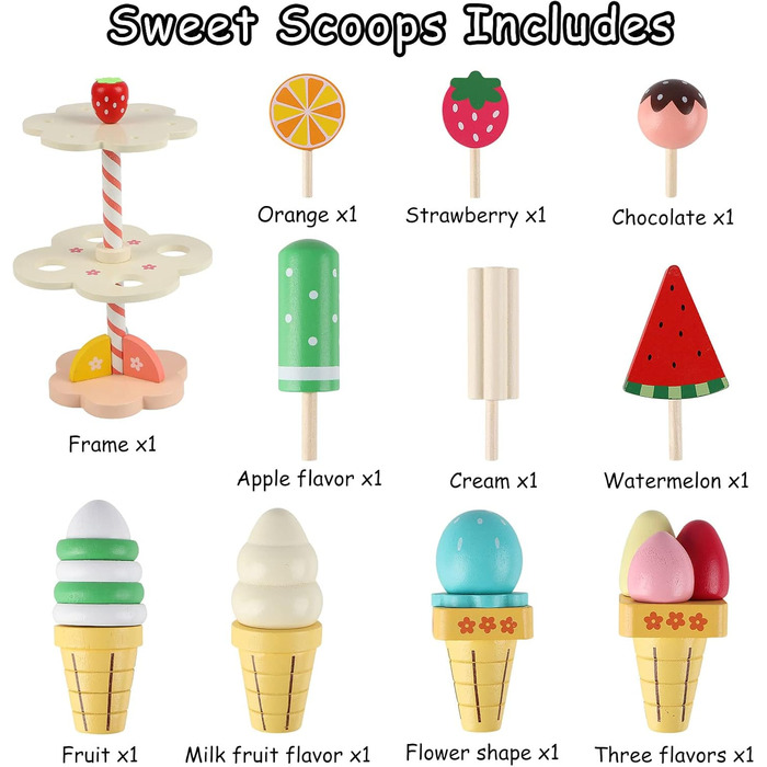 Дерев'яний набір для дитячих рольових ігор KABENFIS Морозиво з 11 деталей