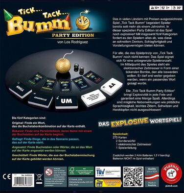 Видання класичної гри Підходить для віку від 12 років і старше Вибухова словесна гра Потрібні мислення, кмітливість і уява, різнокольорові, 6483 Tick Tack Bumm Party