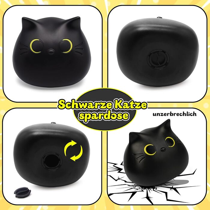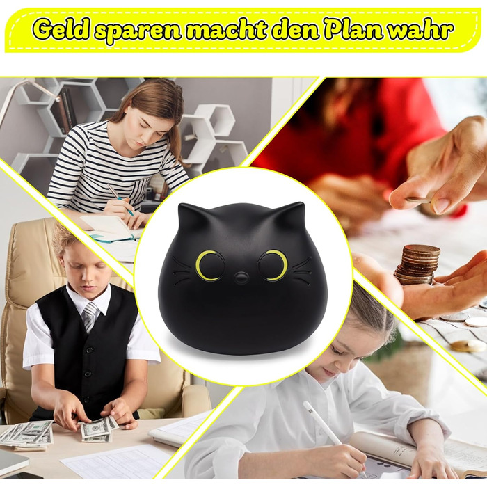 Скарбничка Кіт Чорний Скарбничка Кіт, Копилка для монет Дитяча іграшка, Пластиковий банк для монет Подарунок на день народження для хлопчиків Дівчаток Чорний 16CM