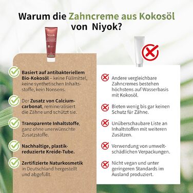 Зубна паста Niyok з органічної кокосової олії (3x75 мл) Зубна паста без фтору Без мікропластику Натуральна косметика Sensitive Також для дітей Веганська зубна паста Натуральні ароматизатори Кривавий апельсин М'ята перцева Лемонграс та Імбир