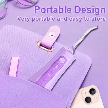 Бездротовий іригатор порожнини рота, переможець тесту іригатора порожнини рота 2024 року, 5 режимів і 8 насадок портативний електричний іригатор порожнини рота 350 мл Стоматологічний іригатор для дому та подорожей, IPX7 водонепроникний фіолетовий