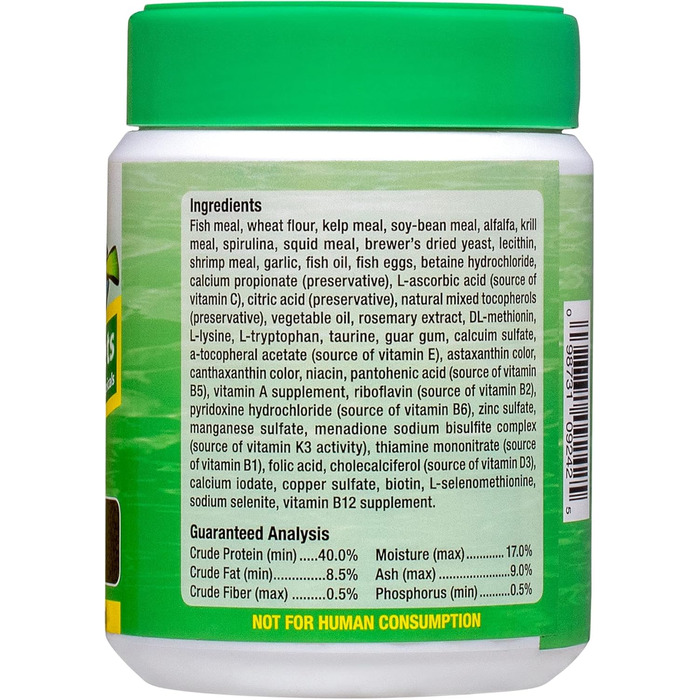 - Добавки Часник, спіруліна, морські водорості, креветки, планктон, люцерна, кальмари
