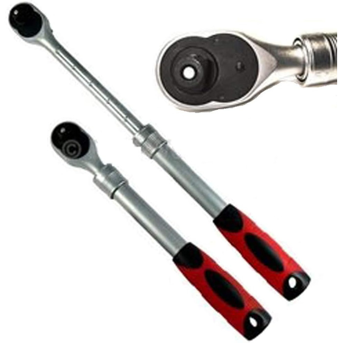 Опис Професійні інструменти Телескопічна тріскачка 1/2' дюйми Телескопічна тріскачка Висувна тріскачка 30-44 см Дрібнозуба реверсивна тріскачка 72 зуби