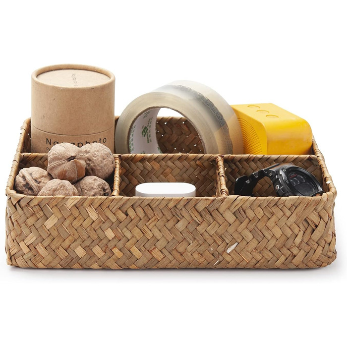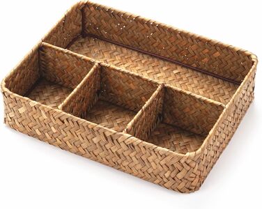 Тримач для чайних пакетиків YANGQIHOME Ротанг, лотки для чайних пакетиків, органайзер для пакетиків для кави/цукру, кошик для зберігання морської трави, розділений кошик для полиці/стільниці 26 x 20 x 6 см