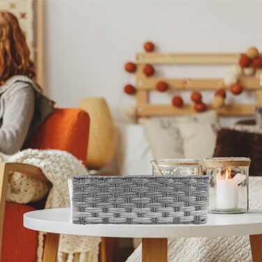 Плетений кошик для зберігання Кутова імітація ротанга плетений кошик для полиць 35x25x13см Настільний органайзер Сіра коробка для зберігання Кімната Кухонний стіл Багатофункціональний стіл для зберігання