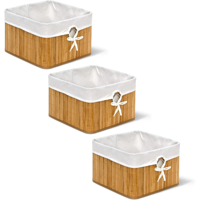 Набір кошиків для натурального зберігання, бамбук, складний кошик для полиць із тканинним чохлом, з круглим входом, 3 шт.