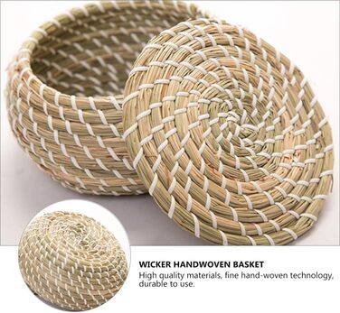 Опис И Міні-солом'яні кошики для зберігання ручної роботи з кришкою Кругла маленька маленька коробка з морської трави Настільний кошик для зберігання ванної кімнати Настільна кухня Контейнери для зберігання іграшок (різні, 3 шт.