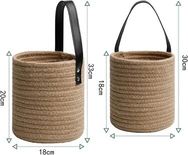 Опис Підвісні кошики для зберігання зі шкіряною ручкою, плетені для посадки, рушники, зберігання іграшок, 2 упаковки (джут)