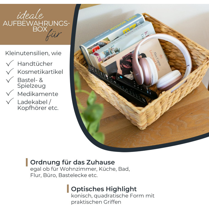 Подарунковий кошик HMF порожній, тканий кошик для зберігання водяного гіацинта прямокутний 30 x 30 x 12 см