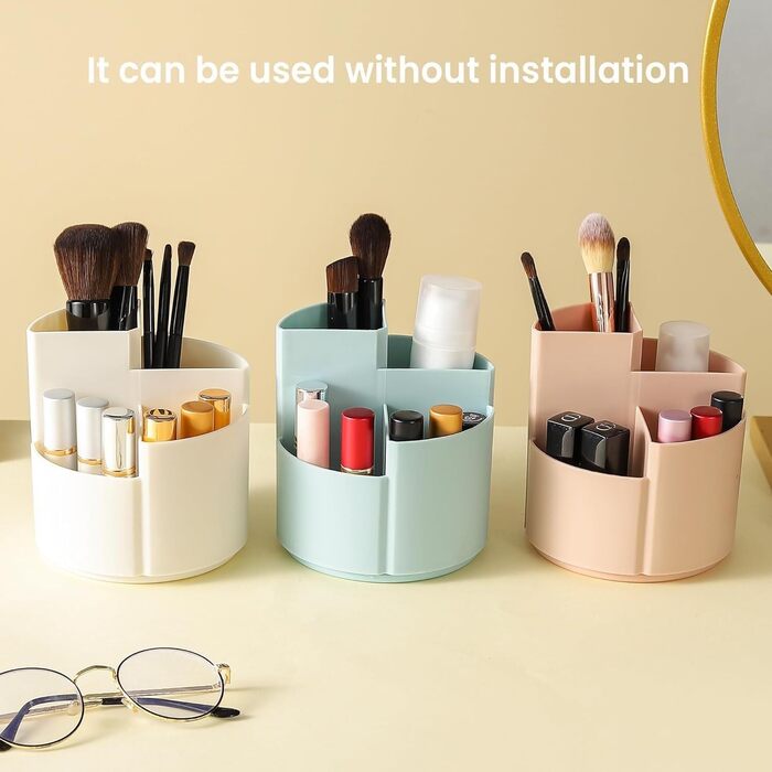 Опис Органайзер для макіяжу OUYUE Обертовий тримач пензлика для макіяжу, органайзер для туалетного столика, 4 відділення, органайзер для косметики на робочому столі, косметичний органайзер для губних помад (колір синій)