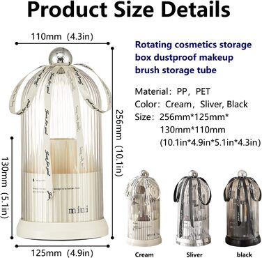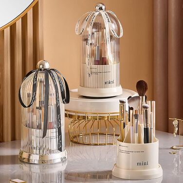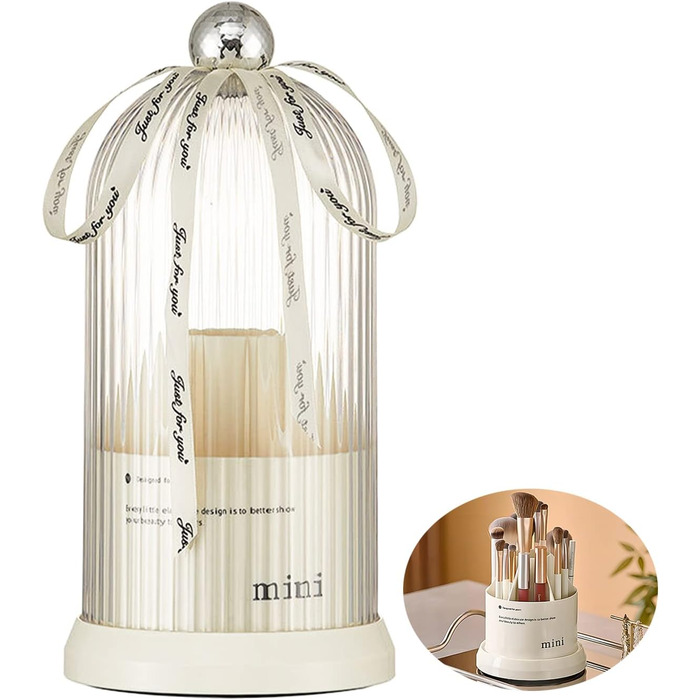 Органайзер для пензлів для макіяжу DASITON, обертовий на 360 косметичний органайзер з кришкою, тримач для пензлика для косметики, зберігання пензлика для макіяжу з 7 відділеннями, зберігання косметики, для туалетного столика, ванна кімната (білий)