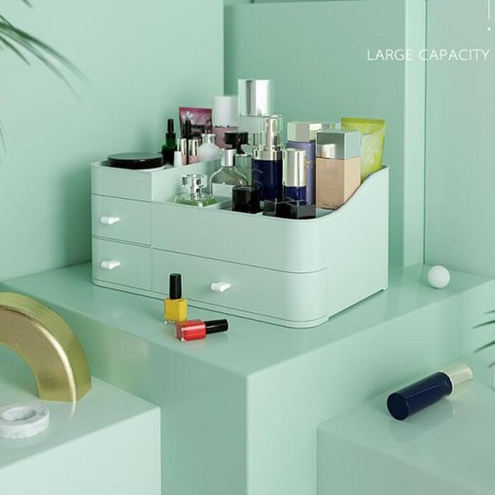 ЗРУЧНІ СЦЕНАРИ: Органайзер для косметики оснащений декількома шухлядами, щоб ви могли зручно зберігати і мати доступ до таких речей, як помади, засоби по догляду за шкірою та інші дрібниці.