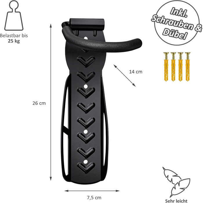 Настінний тримач для велосипеда WELLGRO - Сталеве настінне кріплення для велосипеда - Велосипедний гачок - Підставка для велосипеда - Підставка - Колір на вибір, колір чорний, 4 шт.