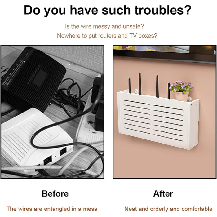 - Рекомендовані програми для продукту монтаж і впорядкування маршрутизаторів WLAN і аксесуарів, пов'язаних з телевізором, прибирання безладу в житлових приміщеннях, поліпшення розподілу сигналу WiFi вдома або в офісі Показати більше