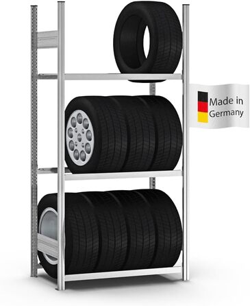 Багато місця для ваших шин! Стелаж для шин від PROREGAL висотою 200 см, шириною 100 см та глибиною 40 см має 3 рівні, що дозволяє зручно зберігати шини та економити простір у гаражі або майстерні.