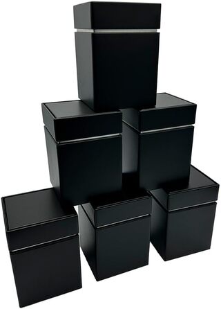 Набір з 6 шт. Tea & Spice Tin Black Special, коробка з ковзною кришкою з жерсті, 78 x 78 x 110 мм, ідеально підходить як коробка для зберігання, квадратна коробка з накладною кришкою приблизно на 100 г розсипного чаю - сучасний дизайн