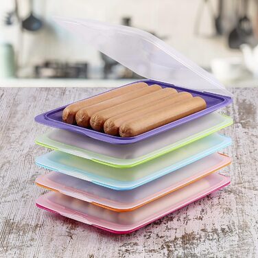 Набір PracticDomus з 4 контейнерами для зберігання продуктів, оптимальне зберігання м'ясної нарізки в холодильнику, розміри 17 х 3,2 х 25,2 см (4 х базовий колір) 4 шт. Basic