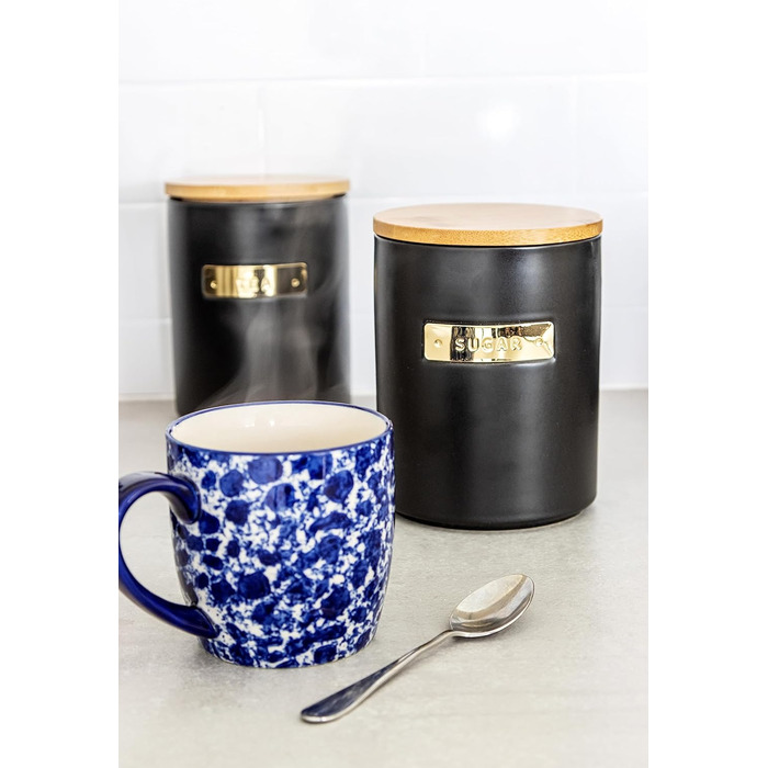 Контейнер для кави MasterClass, керамічний кухонний контейнер для зберігання з латунним ефектом етикетки, вміщує 1 літр, 11,1 x 11,1 x 14,5 см, чорний, кавова банка одинарна