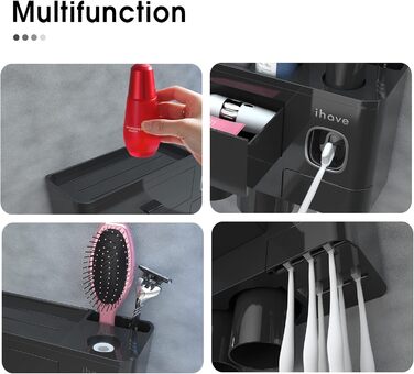 Тримач для зубної щітки iHave для зберігання у ванній кімнаті, настінний тримач для зубної щітки на 3 чашки з автоматичним дозатором зубної пасти, тримач для зубної щітки великої місткості Аксесуари для ванної кімнати чорний