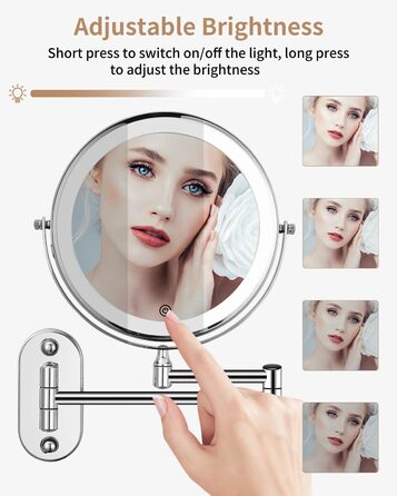 Дзеркало косметичне дзеркало для гоління дзеркало для гоління 360 поворотне настінне дзеркало для макіяжу для ванної кімнати з / 10 шт. освітленням дзеркало збільшення з освітленням 3 кольори вогнів