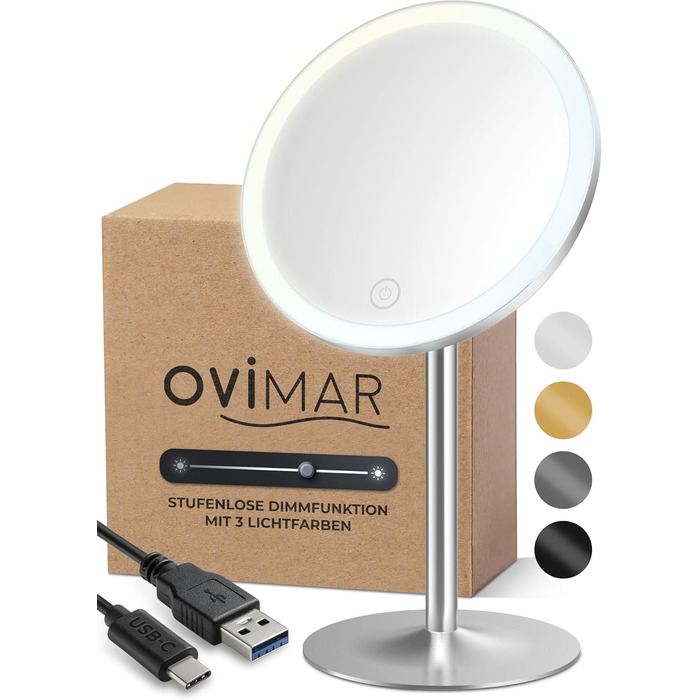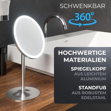 Косметичне дзеркало Bogo silver з підсвічуванням акумуляторне окремо стояче у ванній кімнаті дзеркало з 5-кратним збільшенням дзеркало для макіяжу з підсвічуванням дзеркало на 360 градусів