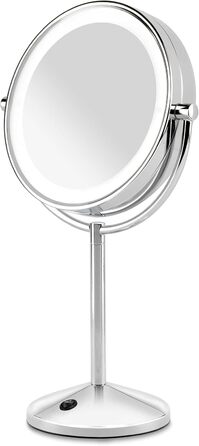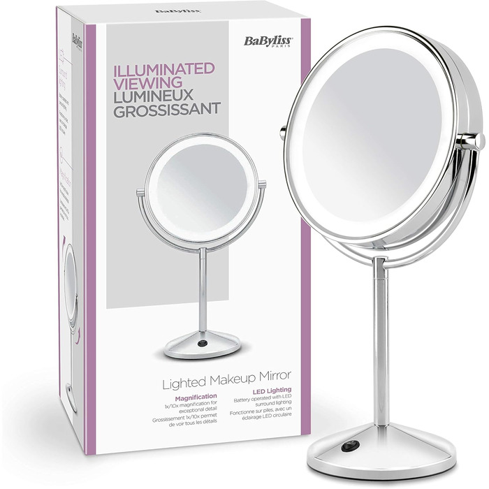 Дзеркало для макіяжу BaByliss 9436E у хромованому дизайні, з підсвічуванням, двостороннє, 10-кратне збільшення, на батарейках