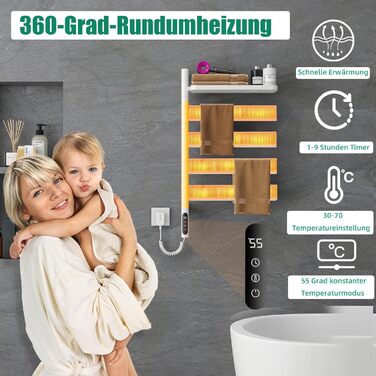 Поворотний рушникосушка електрична, радіатор для ванної кімнати, радіатор для рушникосушки, рушникосушка електрична, рушникосушка електрична, 220 вольт, 125 ват (біла)