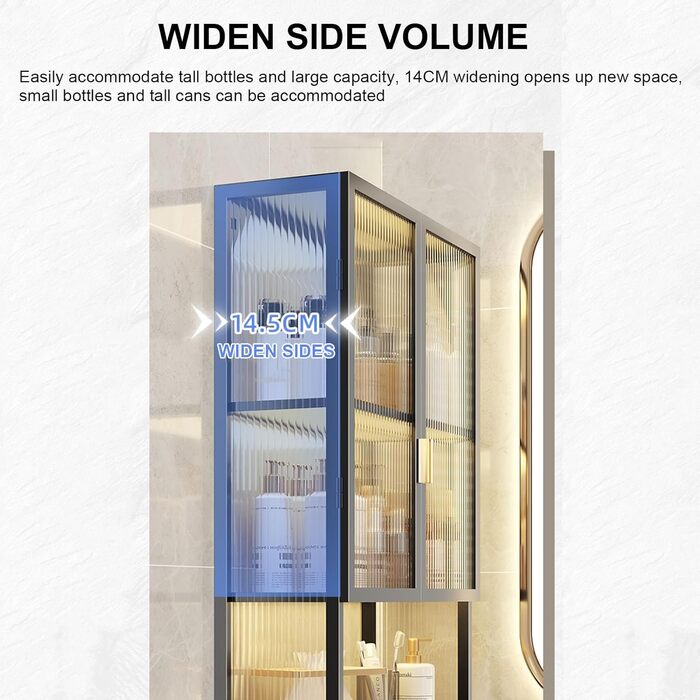 Настінна шафа для ванної кімнати Taifuan, металева медична шафа зі скляними дверима, настінна шафа для ванної кімнати з рушникосушаркою, настінна шафа для ванної кімнати зі знімними полицями, шафа для зберігання над туалетом 50 * 14.5 * 70см / 19.7 * 5.7