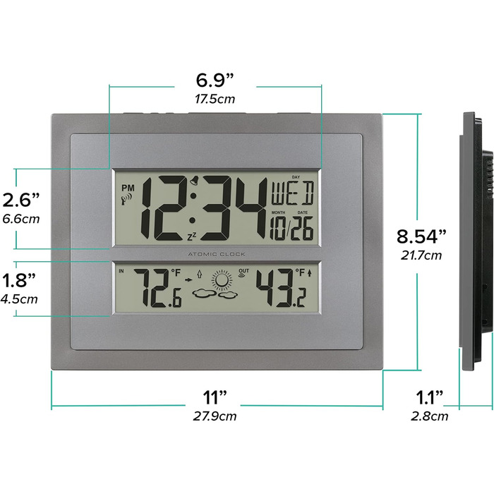 Атомний цифровий настінний годинник La Crosse Technology 512-85937-INT з температурою та прогнозом, сірий/сріблястий