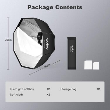 Опис Восьмикутна парасолька Godox, Softbox, 95 см, з сумкою для перенесення, портативна восьмикутна парасолька для студії, фотографії, спалаху, 95 см