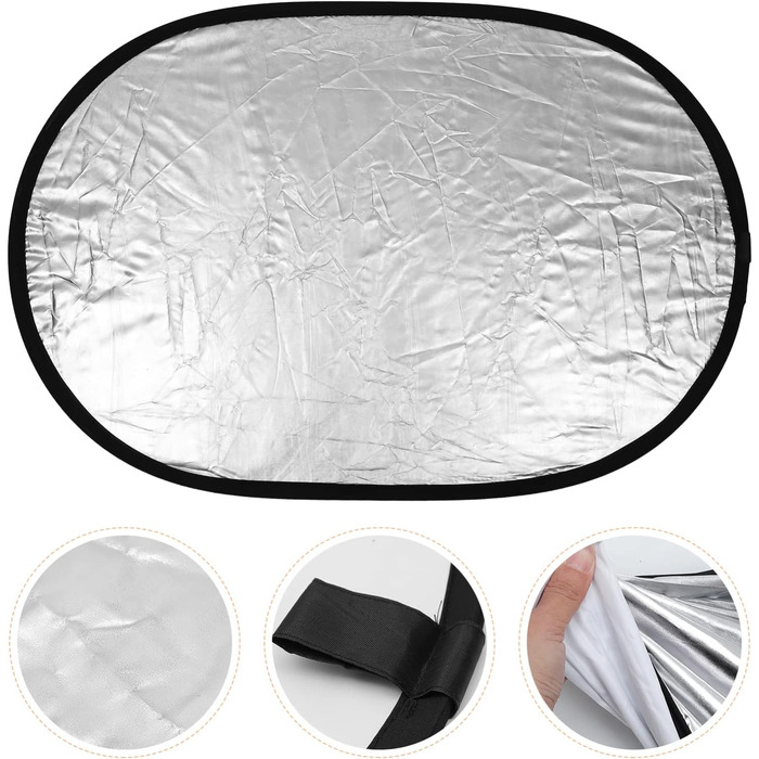 Дизайн реквізиту для фотографії - в одному, максимізує ваші різноманітні потреби у фотографії, легко задовольняє ваші різні потреби у фотографії. Світловідбивач для студії, його можна скласти, можна зберігати рюкзак і брати його з собою, куди б ви не пішли. Відбивач для світла Рефлектор має складну конструкцію, овальну форму, невелику вагу і легко кріпиться