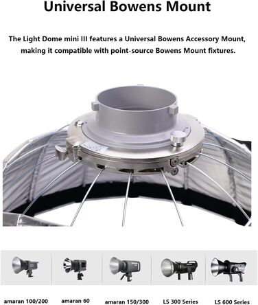 Опис Круглий софтбокс Mini Bowens Mount швидке налаштування зі складною конструкцією, сумісність з Aputure & Amaran та іншими безперервними світильниками Bowens, 58*32,7
