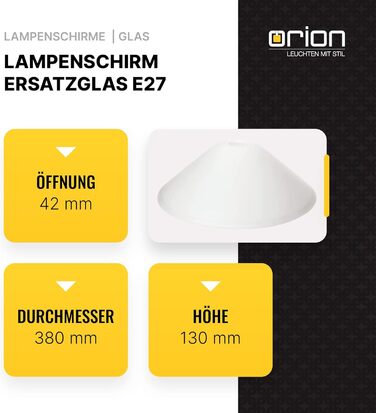 Змінний скляний абажур (Ø 380 мм), отвір під патрон Е27, висота 130 мм, скляний конус, матовий, білий