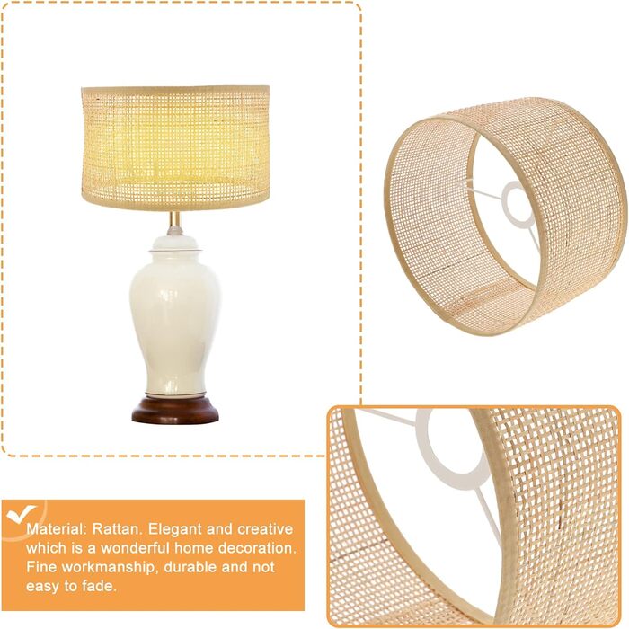 Плетений абажур лампи Люстра з ротанга Абажур Ткані чохли для стельових світильників Кліпса на лампочку Абажур для столу Настінний підлоговий стельовий світильник 22X22X14CM Колір в асортименті 2