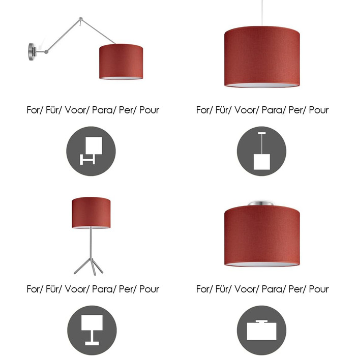 Домашня колекція милих будинків Абажур круглий Полотно Тканинний абажур Текстильна парасолька Бавовняна парасолька Для розетки E27 Діаметр 30см Висота 20см Червоний Для всіх внутрішніх приміщень IP20