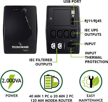 Джерело безперебійного живлення Захист від відключення електроенергії 750 ВА Технологія AVR Plus 10 хв автономності для ПК, 40 хв для модему Безшумний, ОДИНАРНИЙ, (ПК/МОДЕМ/ВІДЕОСПОСТЕРЕЖЕННЯ, 2000 ВА)