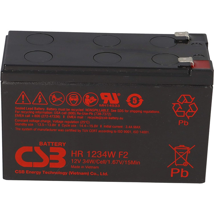 Сумісний акумуляторний блок для APC RBC110, складається з 1 x CSB HR1234WF2, якість промислового обладнання з оригінальними свинцево-кислотними акумуляторами CSB, індивідуальна упаковка, відсутність оригінального продукту APC.