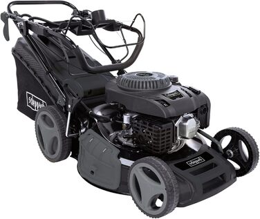 Бензинова газонокосарка Scheppach MS225-53EB Black Edition з E-Start привід 6PS ширина зрізу 53 см 7-позиційне регулювання висоти зрізу 65 літрів функція очищення функція мульчування бічний викид