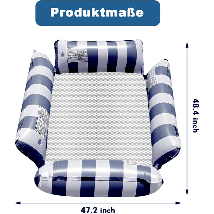 Басейн з надувним матрацом WIKIMO з сіткою 124 х 120 см, аксесуари для басейну, водяний надувний матрац, іграшка для басейну 4 в 1 надувні сидіння для плавання, надувне крісло