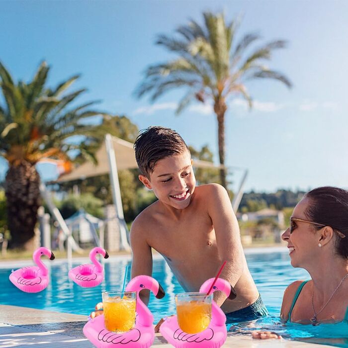 Опис Надувні підставки для напоїв, упаковка з 9 маленьких підставок для напоїв фламінго, плаваючий тримач для напоїв біля басейну, плаваючий тримач для пива фламінго з ПВХ, для пляшки пива, келиха для шампанського, прикраси для хлопчиків і дівчаток