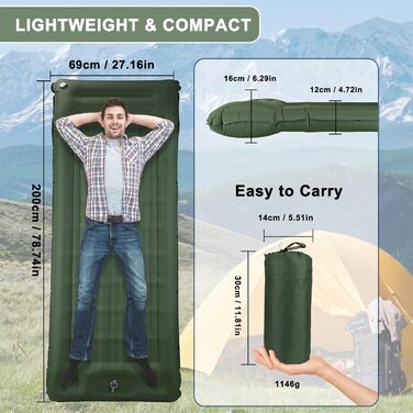 Кемпінговий спальний килимок. Самонадувний потовщений надувний матрац для відкритого кемпінгу з ножним насосом. Підходить для походів, на природі та кемпінгу