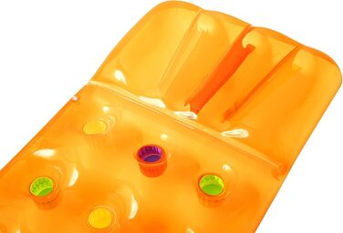 Матрац Colour Lounge від Bestway — це яскравий аксесуар для відпочинку на воді. Виріб має унікальну прозору основу та інтегровані кольорові кишені по всій поверхні, що створює незвичайний візуальний ефект. Модель оснащена комфортною подушкою типу I-beam, яка забезпечує зручну підтримку голови під час релаксації.