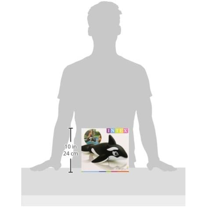 Надувний пліт-каталка Intex у вигляді кита — великий аксесуар, створений для веселих ігор та катання на воді. Він вирізняється значними габаритами: довжина становить 193 сантиметри, а ширина — 119 сантиметрів, що робить його комфортним для використання дітьми віком від трьох років. Пліт виконаний у чорному кольорі і призначений для катання у басейнах, на озерах та інших водоймах.