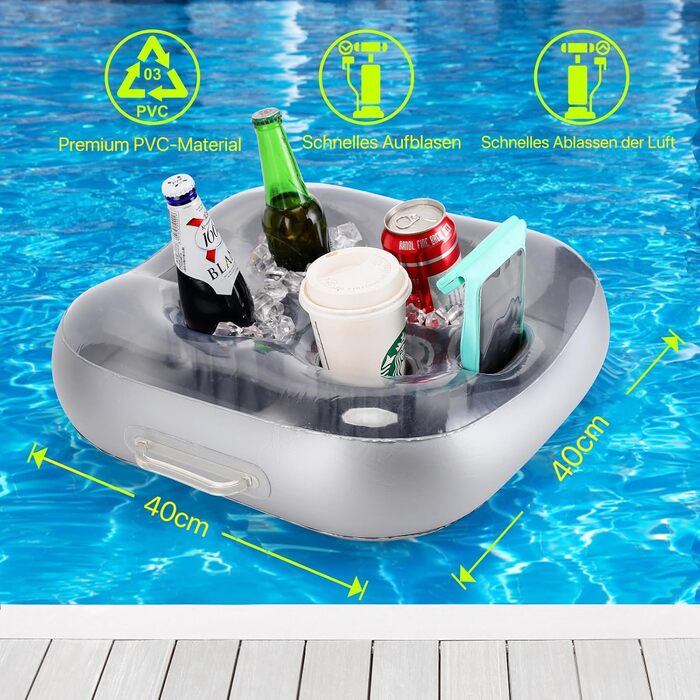 Надувний плавучий тримач від HIOBUREY розроблений для забезпечення максимальної зручності під час водного відпочинку, вечірок та релаксації. Завдяки своїй великій місткості та винятковій стійкості, аксесуар дозволяє тримати всі необхідні напої та закуски прямо на воді, усуваючи потребу залишати басейн чи джакузі.