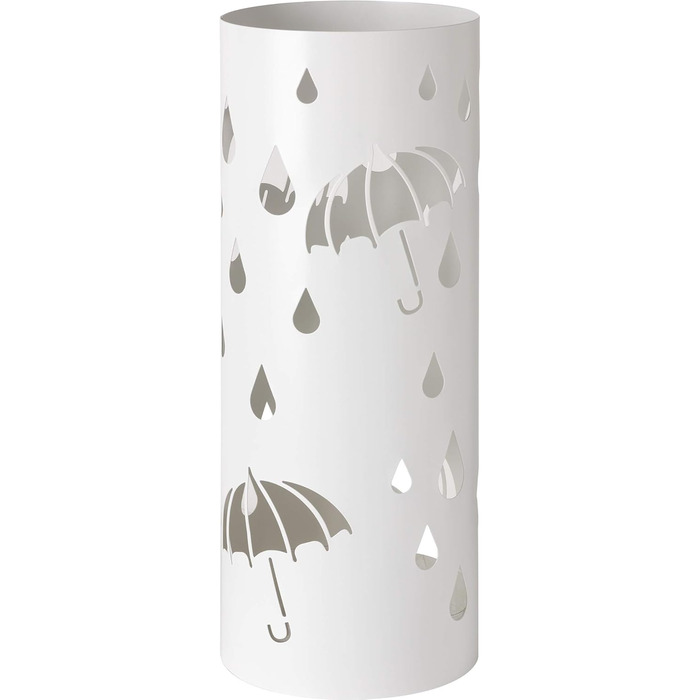 Циліндрична підставка для парасольки Baroni Home з металу, з виїмками під дощем і формою парасольки біла 19x19x49 см, з гачком і знімною чашею для дощу