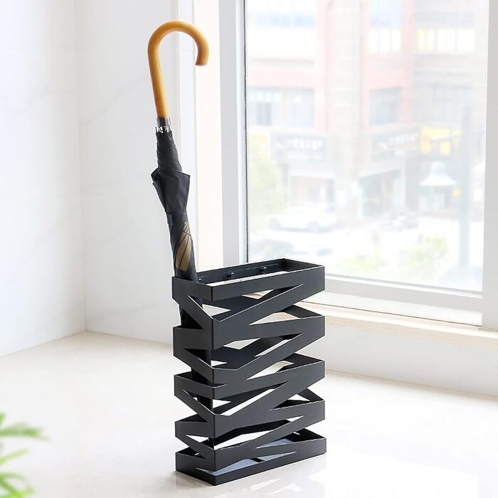 Підставка для парасольок, Порожниста підставка для парасольок для офісу, квартири, вузький тримач для парасольки - економія місця, прямокутна окремо стояча підставка-органайзер у металевому/чорному кольорі