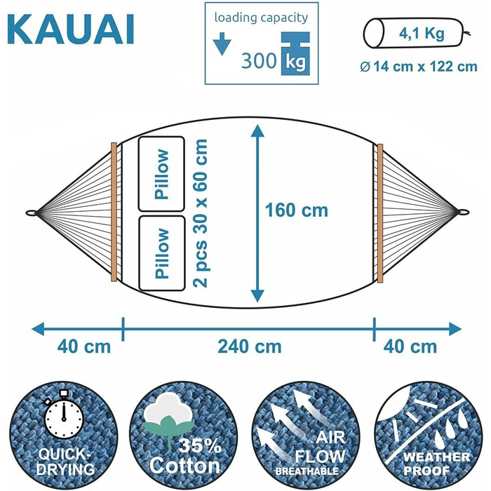 Опис Гамак з 2 подушками 240 x 160 см your GEAR