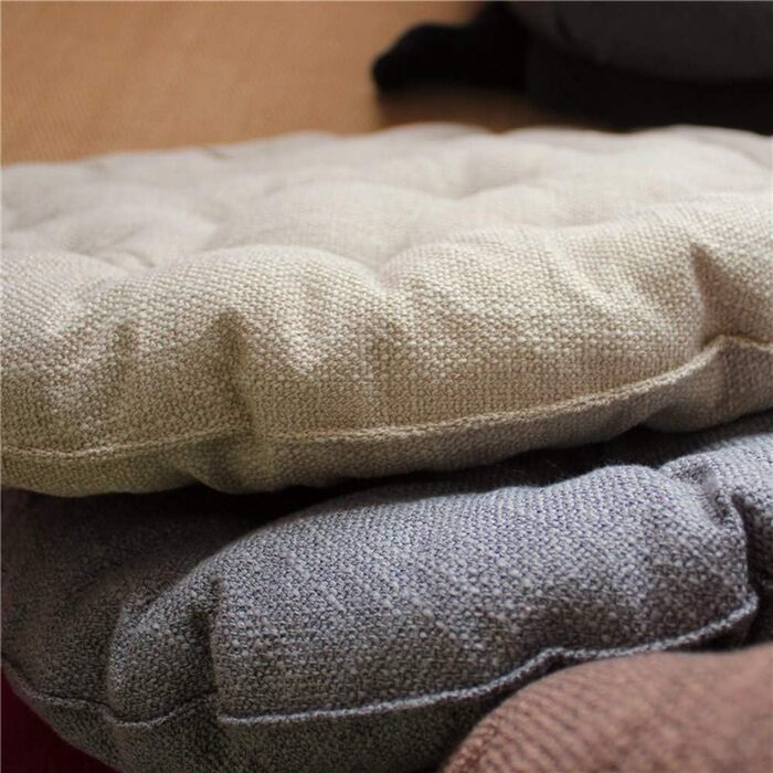 Подушка наповнена високоякісною бавовною, яка гарантує, що виріб залишатиметься м'яким та пухнастим протягом тривалого часу. Наповнювач із кімнатної бавовни забезпечує додаткову міцність та довговічність. Для запобігання збиванню та сплющенню з часом застосована техніка стьобання (tufted). Покриття виготовлено з екологічно чистої тканини, що складається з бавовни та льону. Такий матеріал є дихаючим і приємним на дотик. Товсте сидіння значно знижує тиск на тіло, забезпечуючи комфорт.