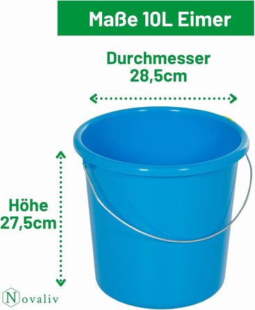 Відро 10л синє зі шкалою - Відро для прибирання 10 літрів 28,5 см Практичне універсальне відро зі шкалою для дому та саду ідеально підходить як господарське відро, відро для води, відро для швабри, відро 5 10 літрів синє, 5 шт.