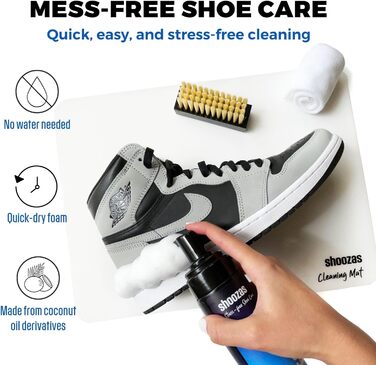 Опис Набір для чищення взуття Shoozas без використання води швидко висихаючий ,нетоксичний, з водонепроникним килимком
